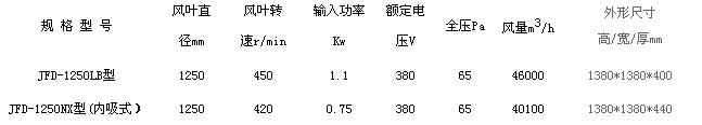喇叭口風機(百葉式)技術參數: